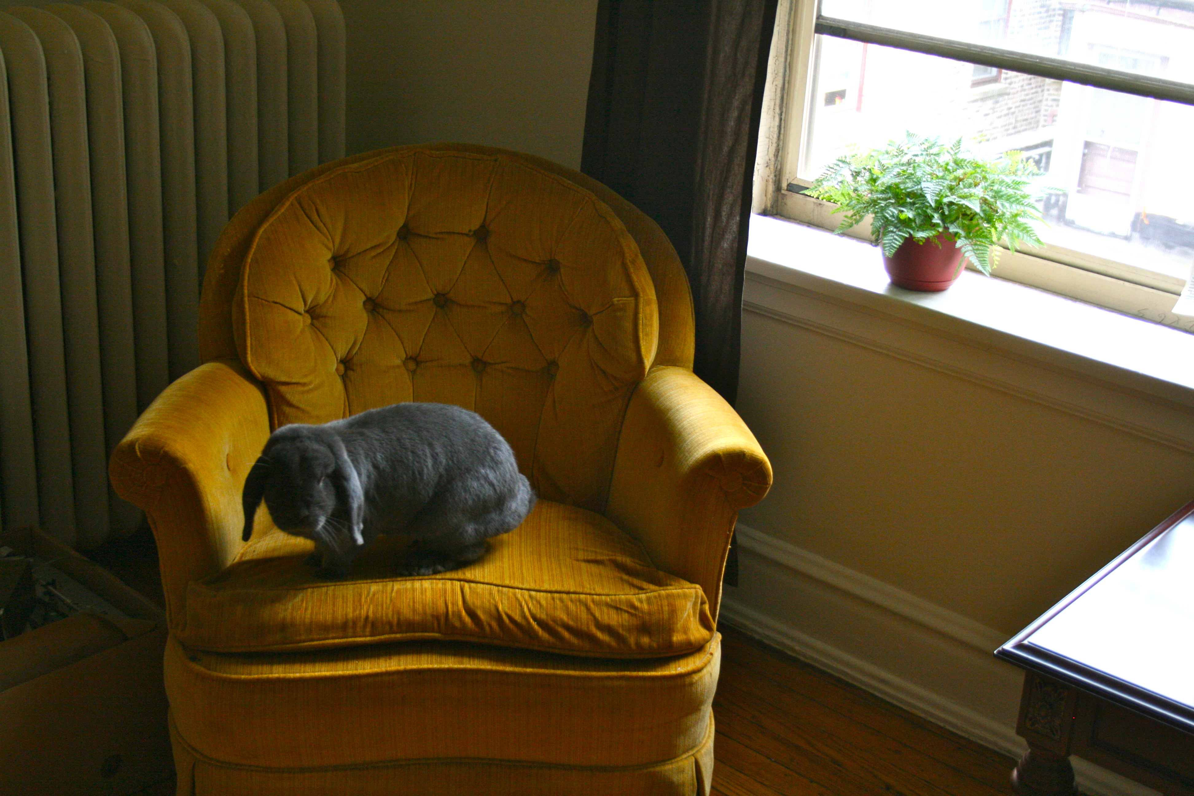 Crumpet and Clementine are experts in the art of rest. They love to stretch out and sleep for hours on warm summer days. They can rest anywhere: spread out on a rug, or with their bellies pressed on a cool tile floor. Often they even lie one on top of the other, slowly blinking and leisurely smelling the air. Such is the expertise of pet rabbits.